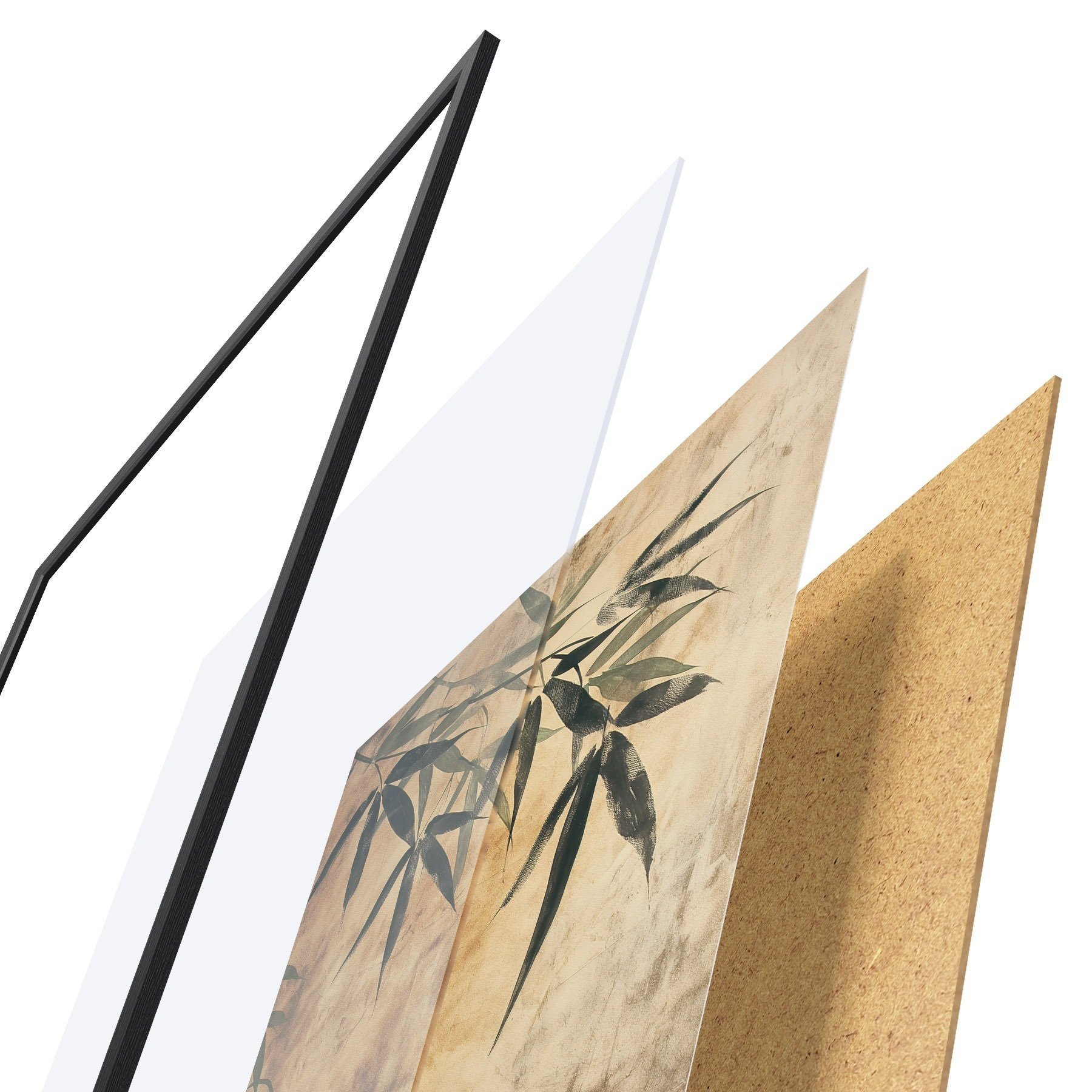 El póster consta de marco, plexiglás, imagen impresa y soporte de aglomerado. El póster puede colgarse inmediatamente en la pared gracias a los soportes de la parte posterior.