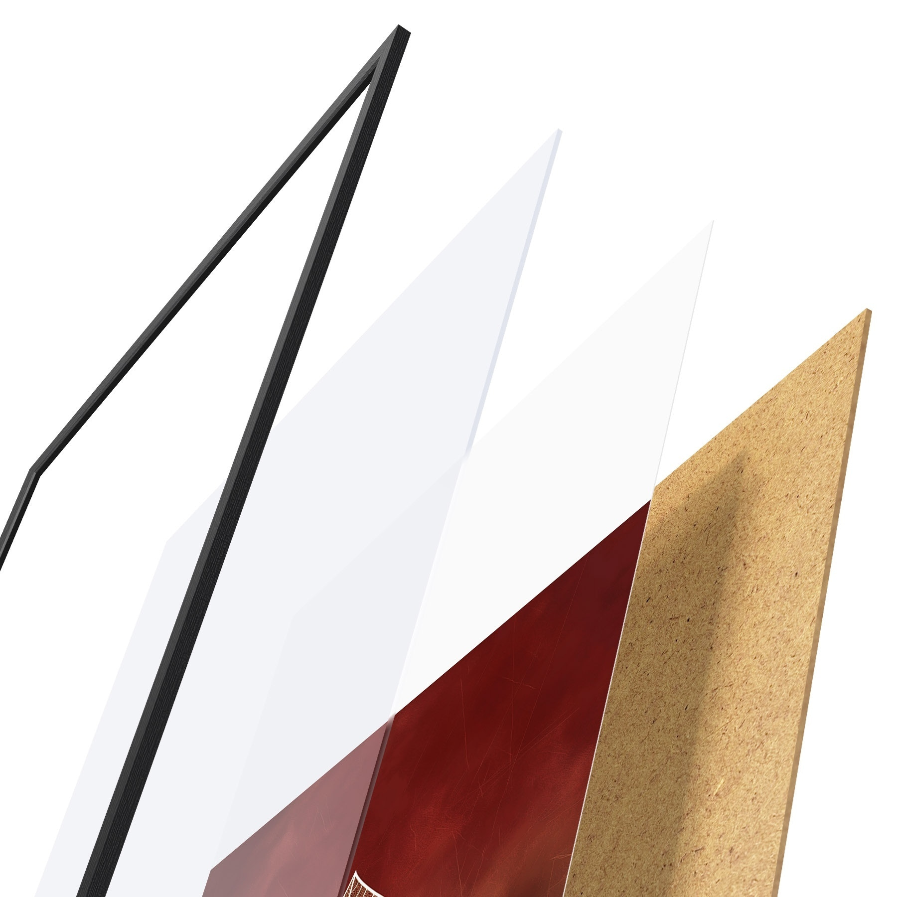 El póster consta de marco, plexiglás, imagen impresa y soporte de aglomerado. El póster puede colgarse inmediatamente en la pared gracias a los soportes de la parte posterior.
