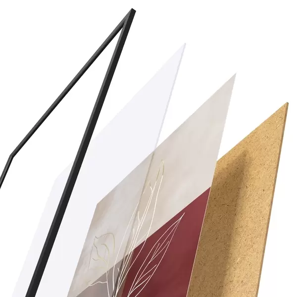 El póster consta de marco, plexiglás, imagen impresa y soporte de aglomerado. El póster puede colgarse inmediatamente en la pared gracias a los soportes de la parte posterior.
