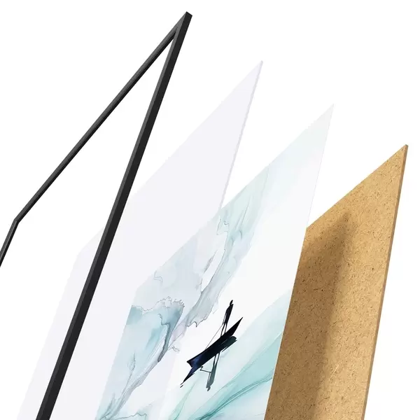 El póster consta de marco, plexiglás, imagen impresa y soporte de aglomerado. El póster puede colgarse inmediatamente en la pared gracias a los soportes de la parte posterior.