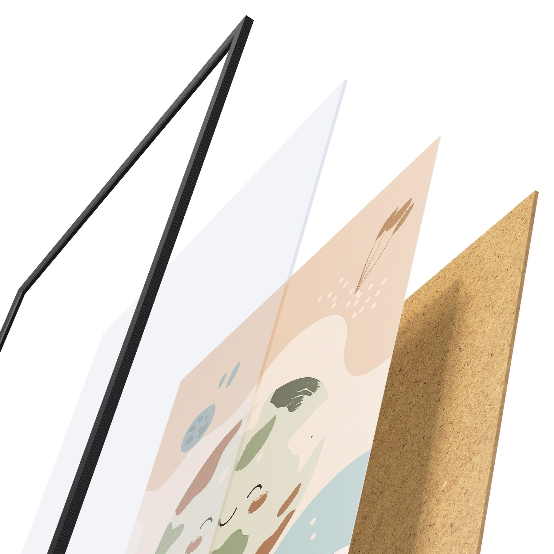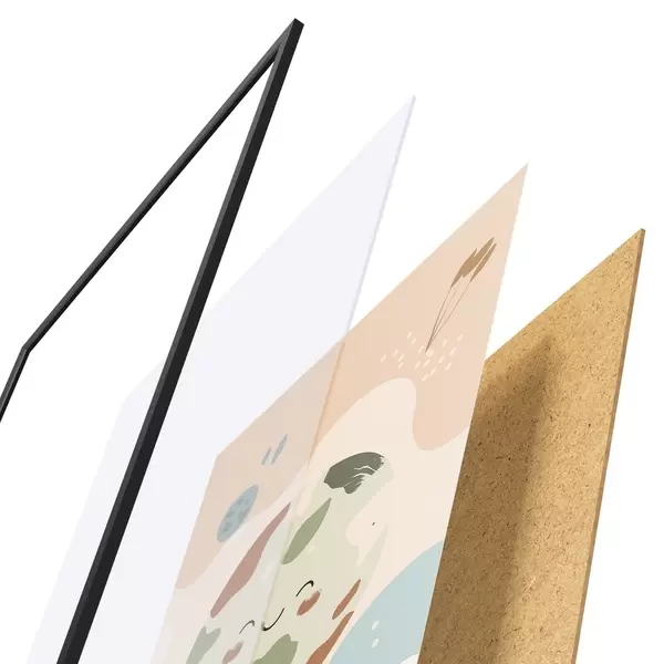 El póster consta de marco, plexiglás, imagen impresa y soporte de aglomerado. El póster puede colgarse inmediatamente en la pared gracias a los soportes de la parte posterior.
