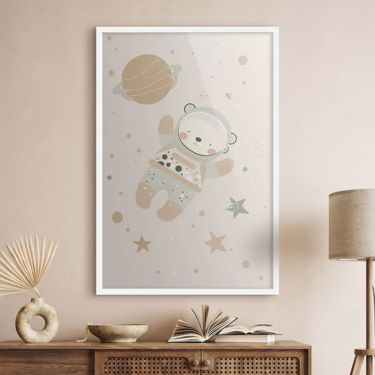 El póster consta de marco, plexiglás, imagen impresa y soporte de aglomerado. El póster puede colgarse inmediatamente en la pared gracias a los soportes de la parte posterior.
