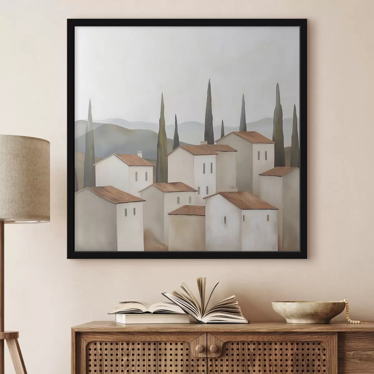 El póster consta de marco, plexiglás, imagen impresa y soporte de aglomerado. El póster puede colgarse inmediatamente en la pared gracias a los soportes de la parte posterior.