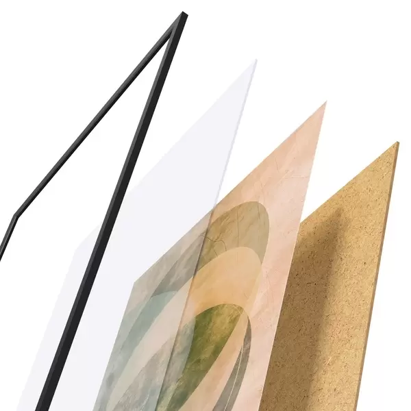 El póster consta de marco, plexiglás, imagen impresa y soporte de aglomerado. El póster puede colgarse inmediatamente en la pared gracias a los soportes de la parte posterior.
