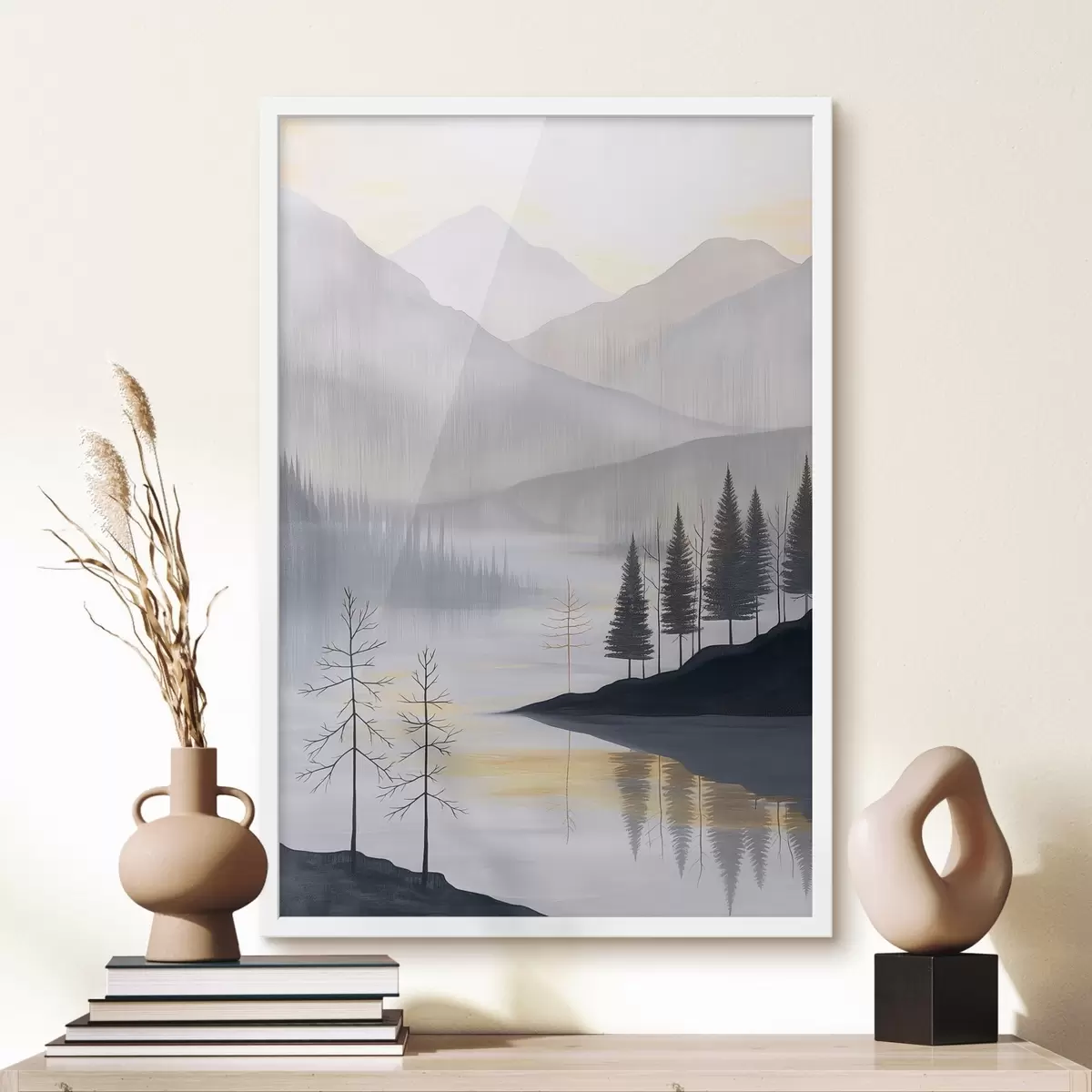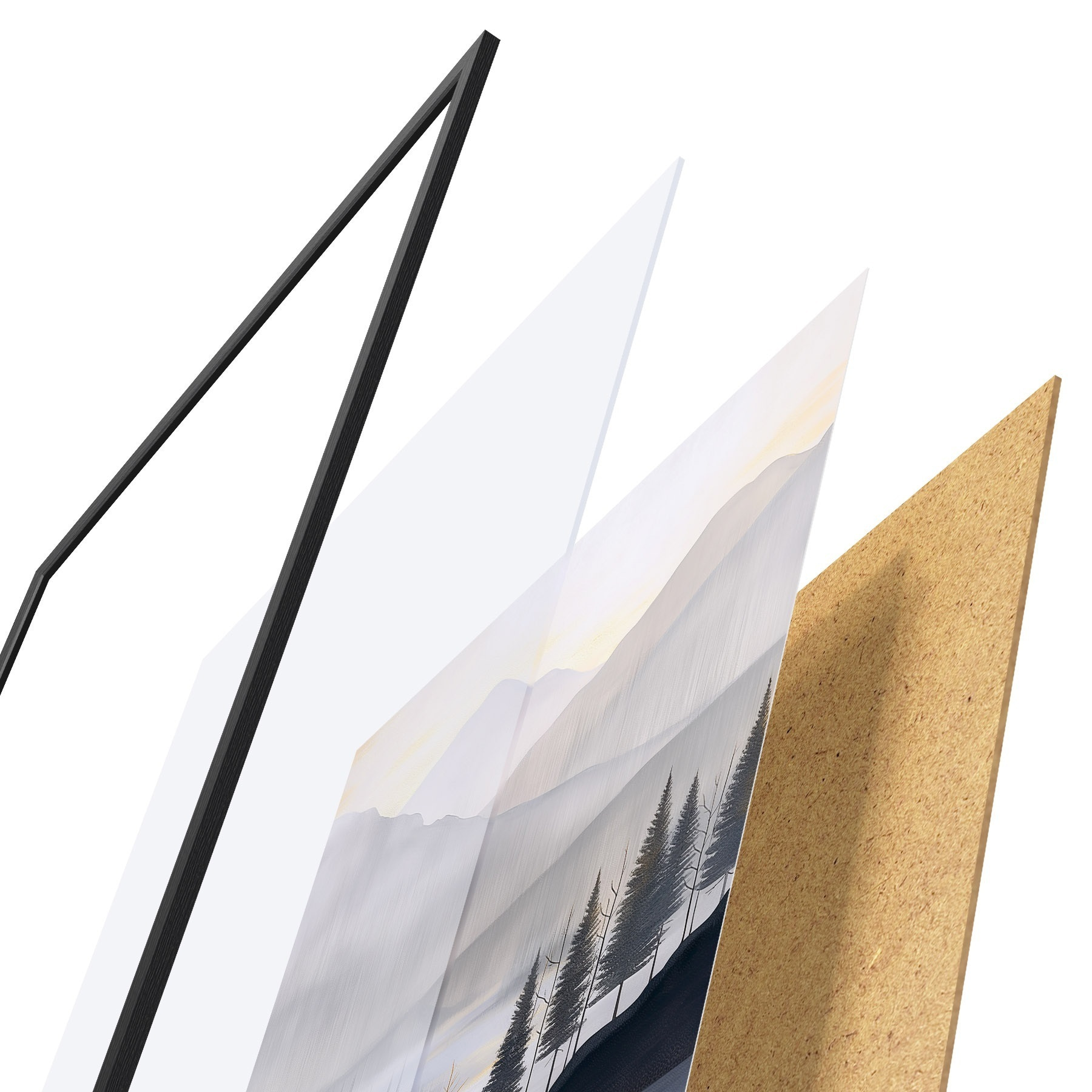 El póster consta de marco, plexiglás, imagen impresa y soporte de aglomerado. El póster puede colgarse inmediatamente en la pared gracias a los soportes de la parte posterior.
