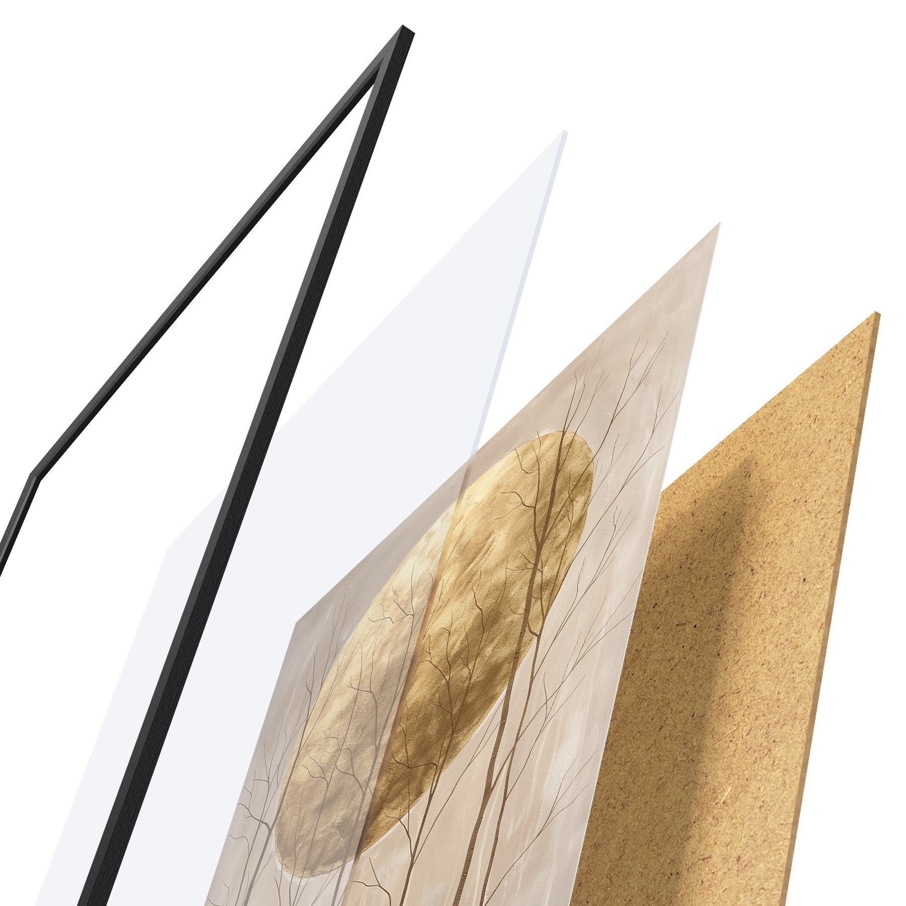 El póster consta de marco, plexiglás, imagen impresa y soporte de aglomerado. El póster puede colgarse inmediatamente en la pared gracias a los soportes de la parte posterior.