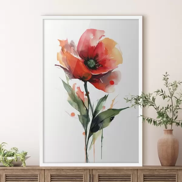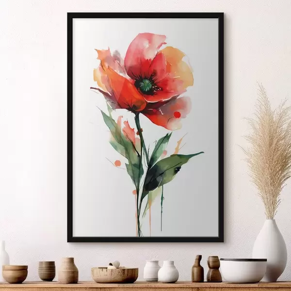 Poster Flor de amapola con expresivas gotas de pintura acuarela en estilo ilustrativo de arte moderno. f47086