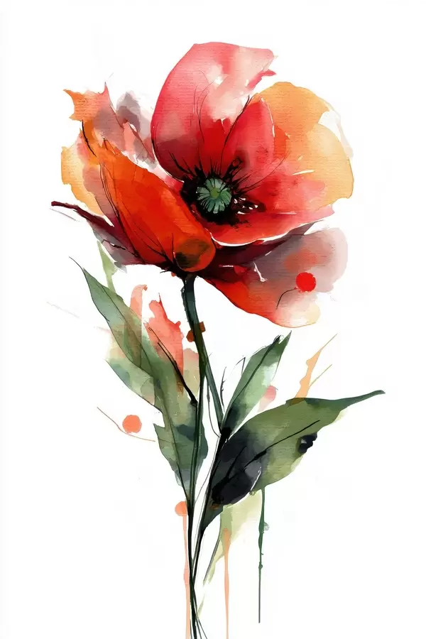 Poster Flor de amapola con expresivas gotas de pintura acuarela en estilo ilustrativo de arte moderno. f47086