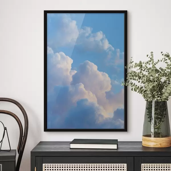 Poster Nubes voluminosas en una suave paleta de azules y rosas con un estilo gráfico digital fotorrealista. f47088