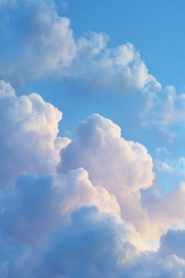 Poster Nubes voluminosas en una suave paleta de azules y rosas con un estilo gráfico digital fotorrealista. f47088