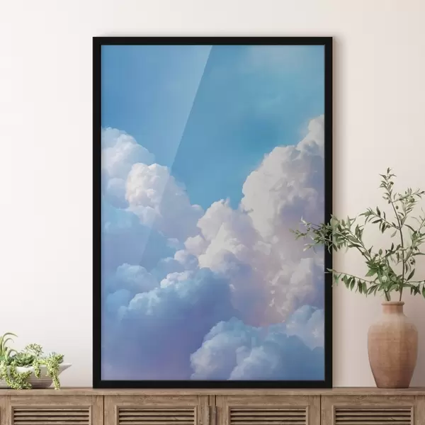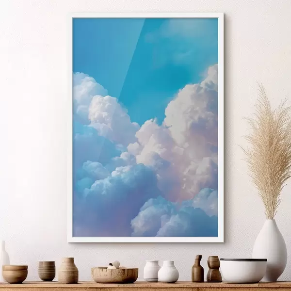 Poster Pintoresco paisaje celeste con enormes nubes blancas en estilo gráfico digital. Nr f47089