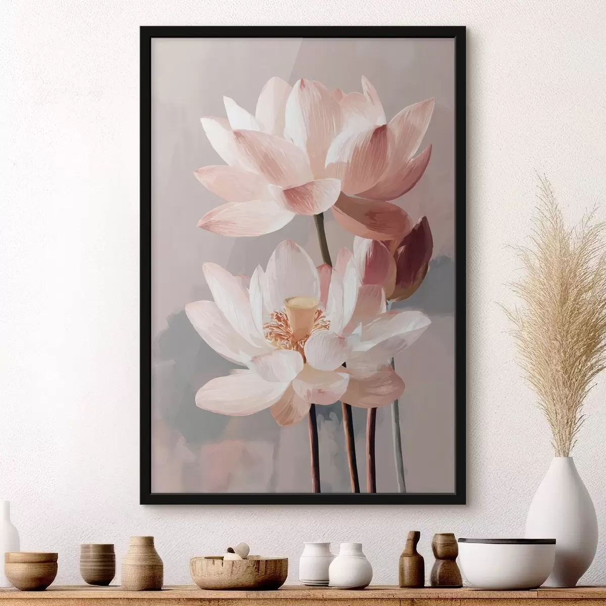 Poster Delicados lotos rosas sobre un fondo pastel en estilo pictórico moderno. f47092