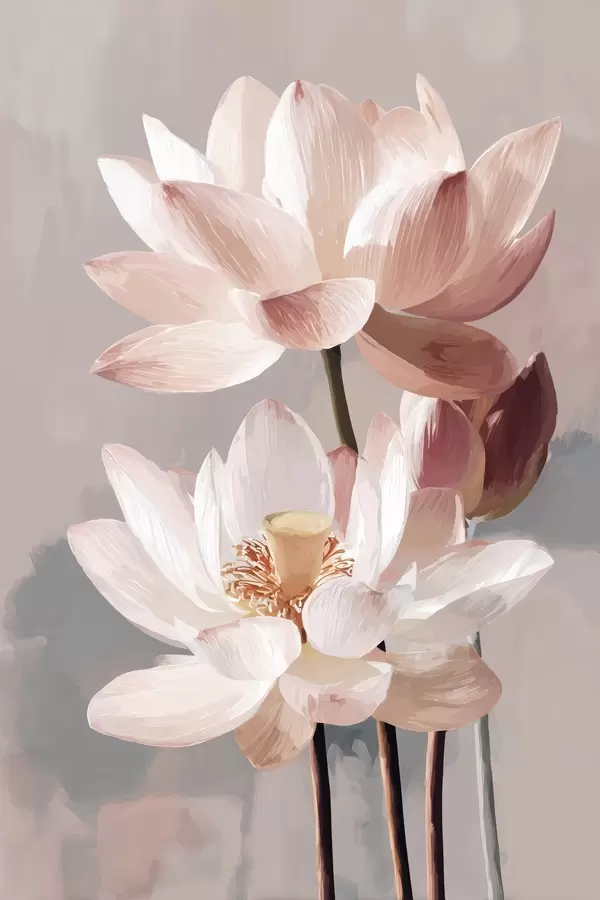 Poster Delicados lotos rosas sobre un fondo pastel en estilo pictórico moderno. f47092