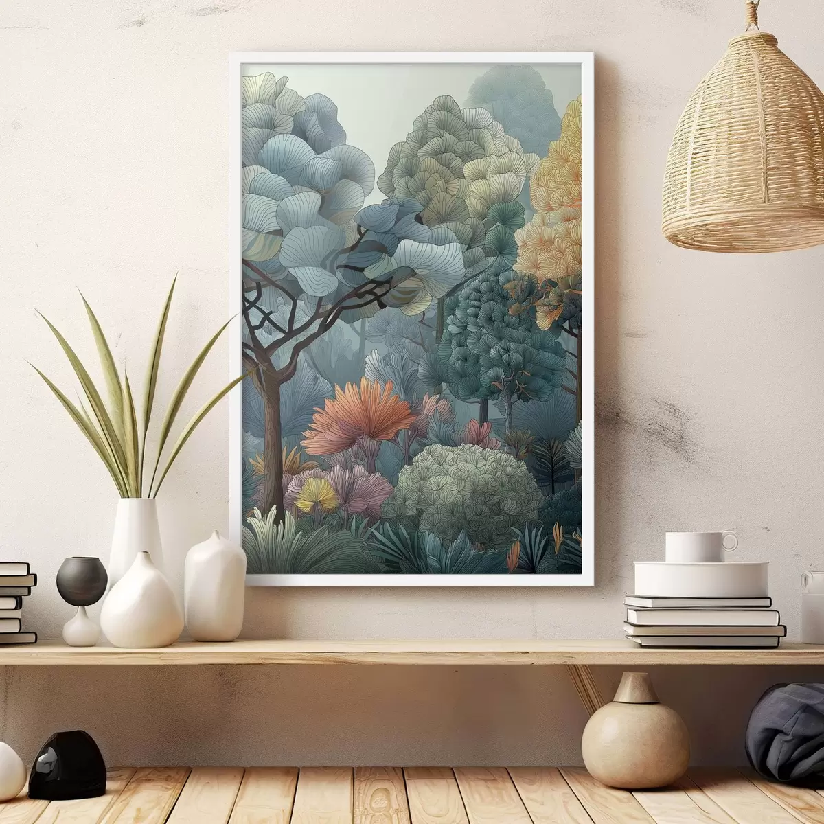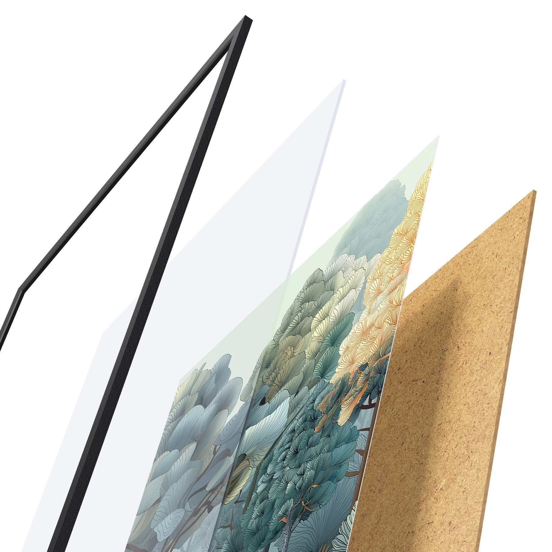 El póster consta de marco, plexiglás, imagen impresa y soporte de aglomerado. El póster puede colgarse inmediatamente en la pared gracias a los soportes de la parte posterior.