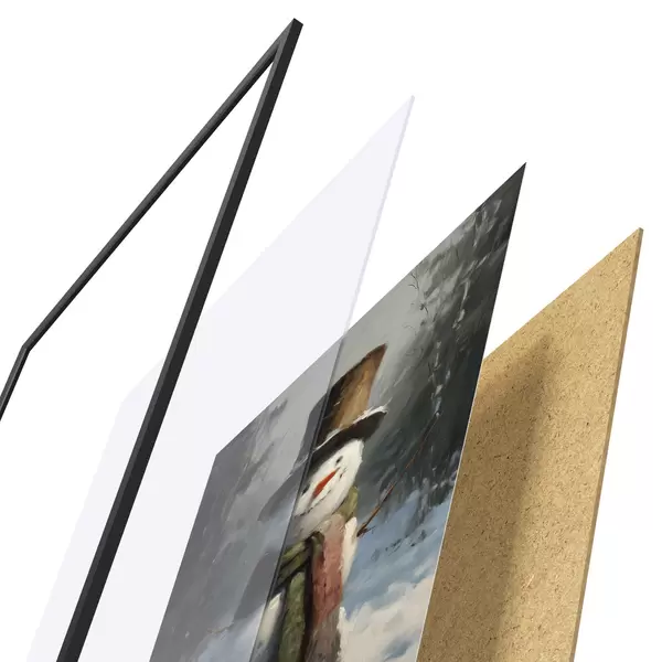 El póster consta de marco, plexiglás, imagen impresa y soporte de aglomerado. El póster puede colgarse inmediatamente en la pared gracias a los soportes de la parte posterior.