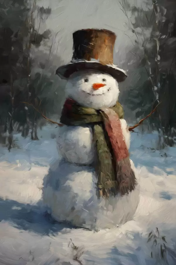 Poster muñeco de nieve al estilo de la pintura al óleo f47116