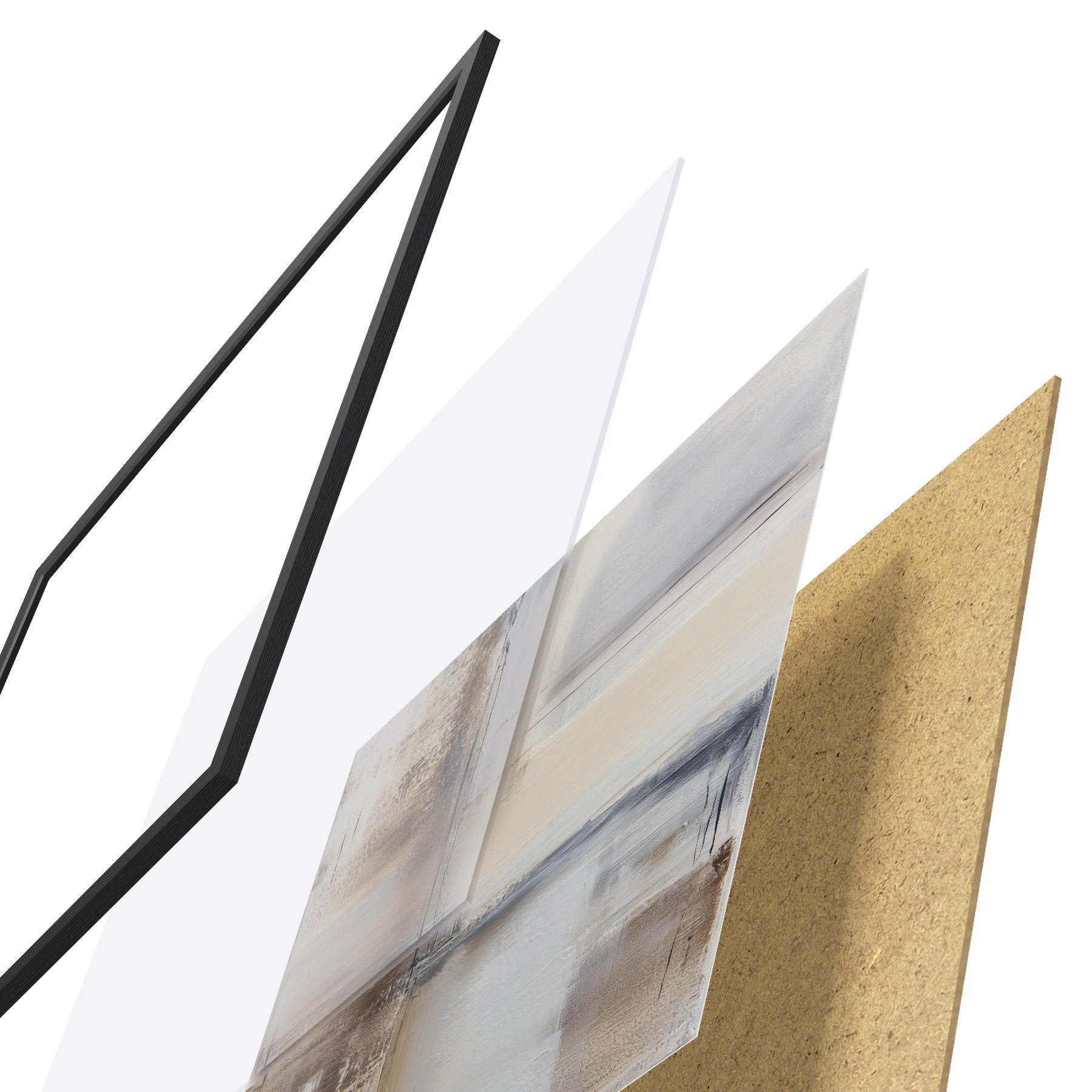 El póster consta de marco, plexiglás, imagen impresa y soporte de aglomerado. El póster puede colgarse inmediatamente en la pared gracias a los soportes de la parte posterior.