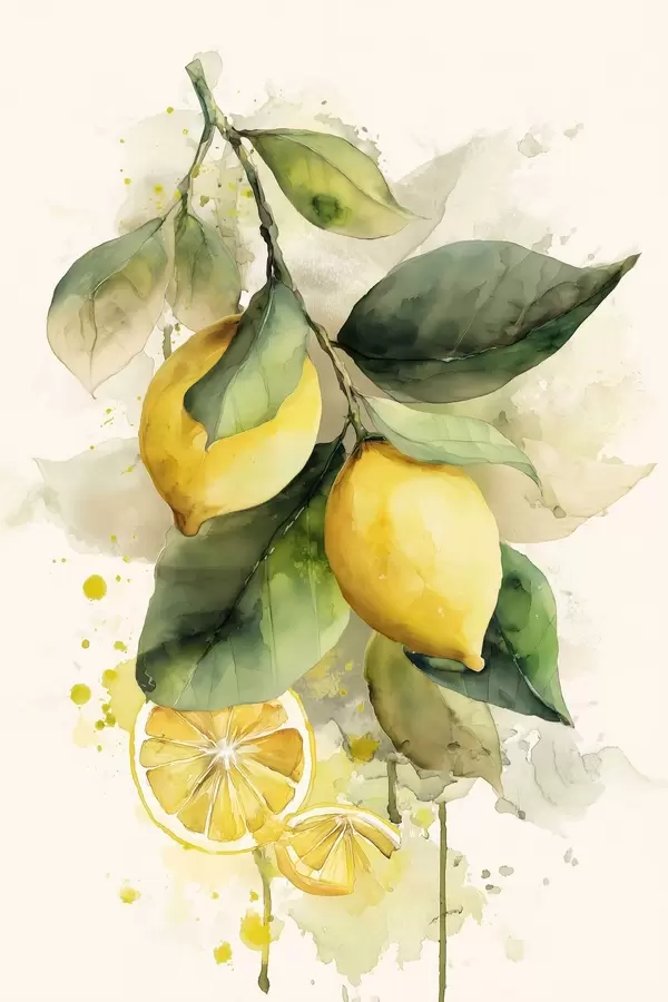 Poster rama con limones en estilo acuarela Nr f47123
