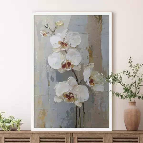 Poster Flores de orquídea blanca al estilo de la pintura al óleo. f47132