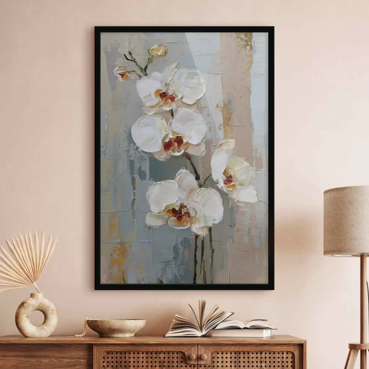 Poster Flores de orquídea blanca al estilo de la pintura al óleo. Nr f47132