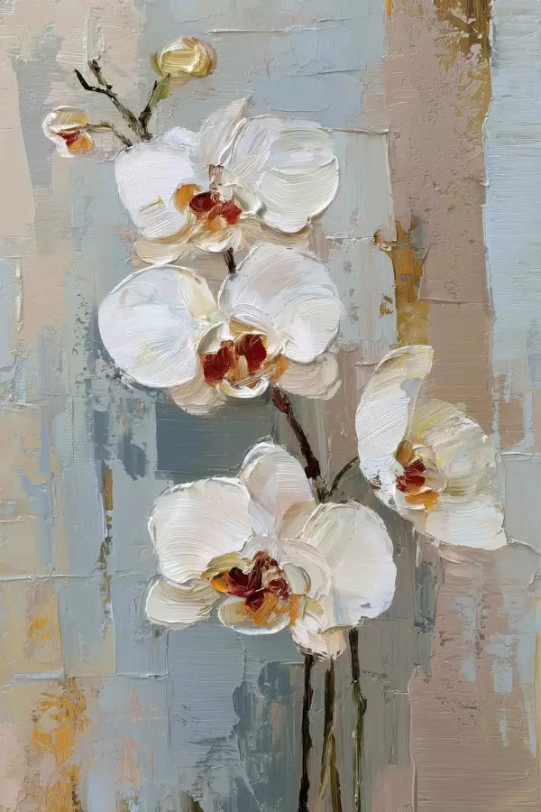 Poster Flores de orquídea blanca al estilo de la pintura al óleo. f47132