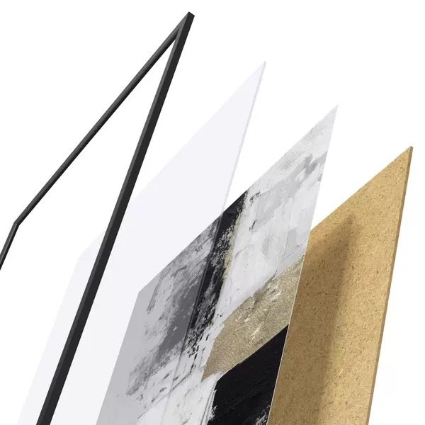 El póster consta de marco, plexiglás, imagen impresa y soporte de aglomerado. El póster puede colgarse inmediatamente en la pared gracias a los soportes de la parte posterior.