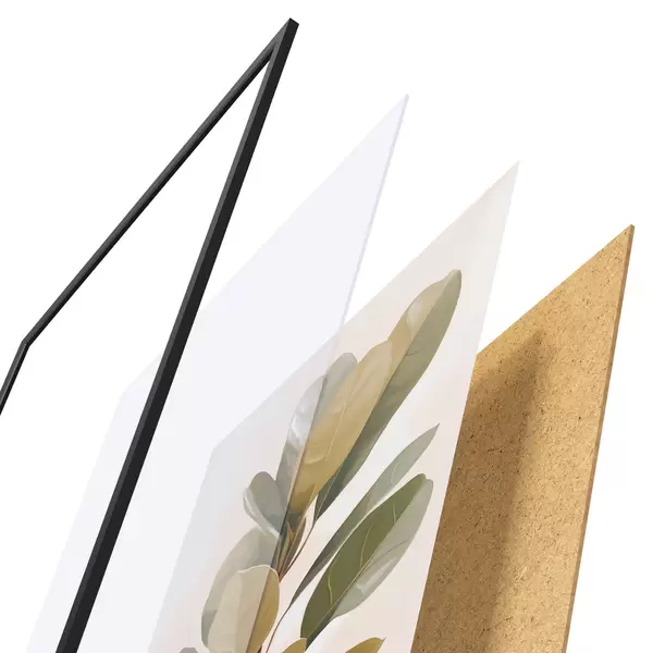El póster consta de marco, plexiglás, imagen impresa y soporte de aglomerado. El póster puede colgarse inmediatamente en la pared gracias a los soportes de la parte posterior.
