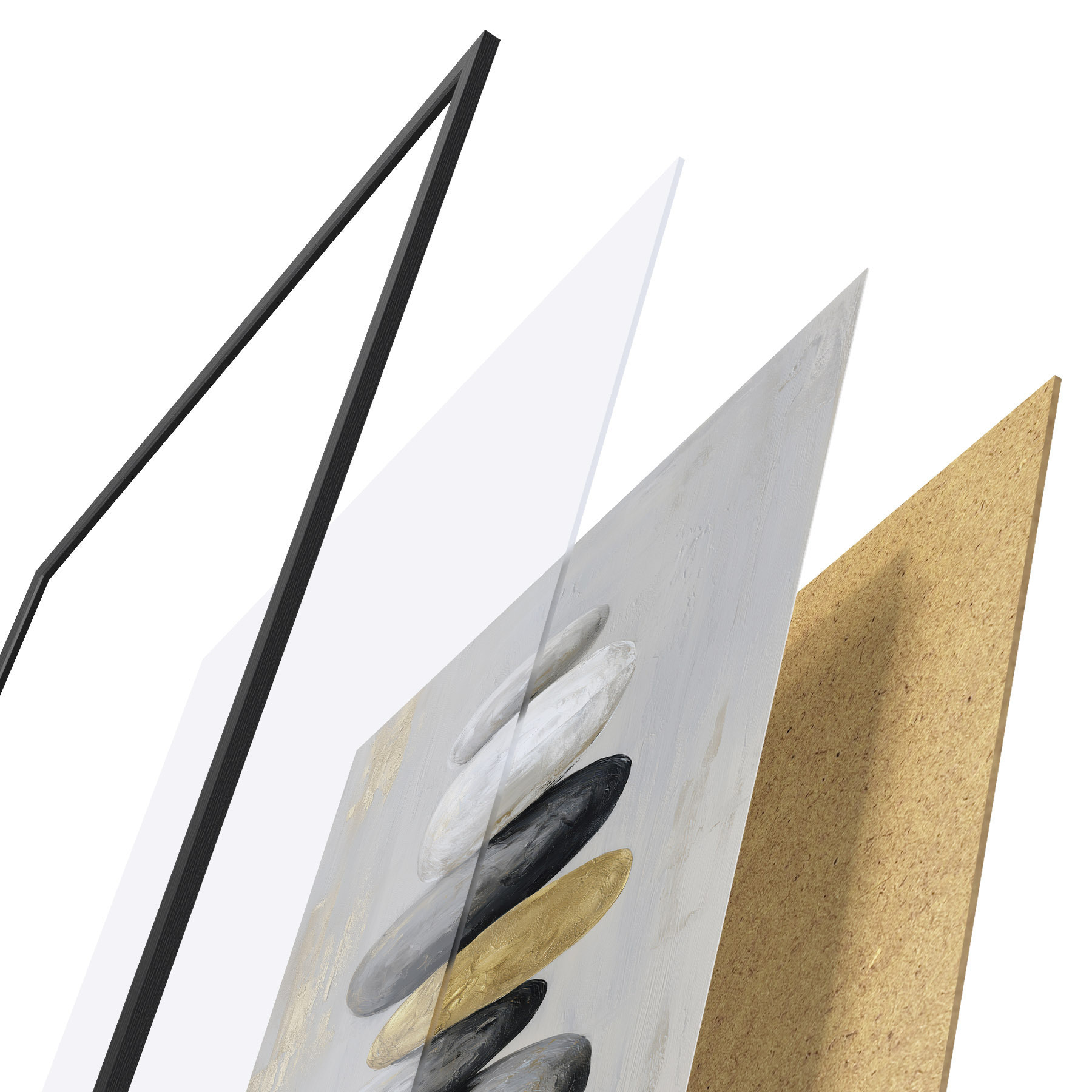 El póster consta de marco, plexiglás, imagen impresa y soporte de aglomerado. El póster puede colgarse inmediatamente en la pared gracias a los soportes de la parte posterior.