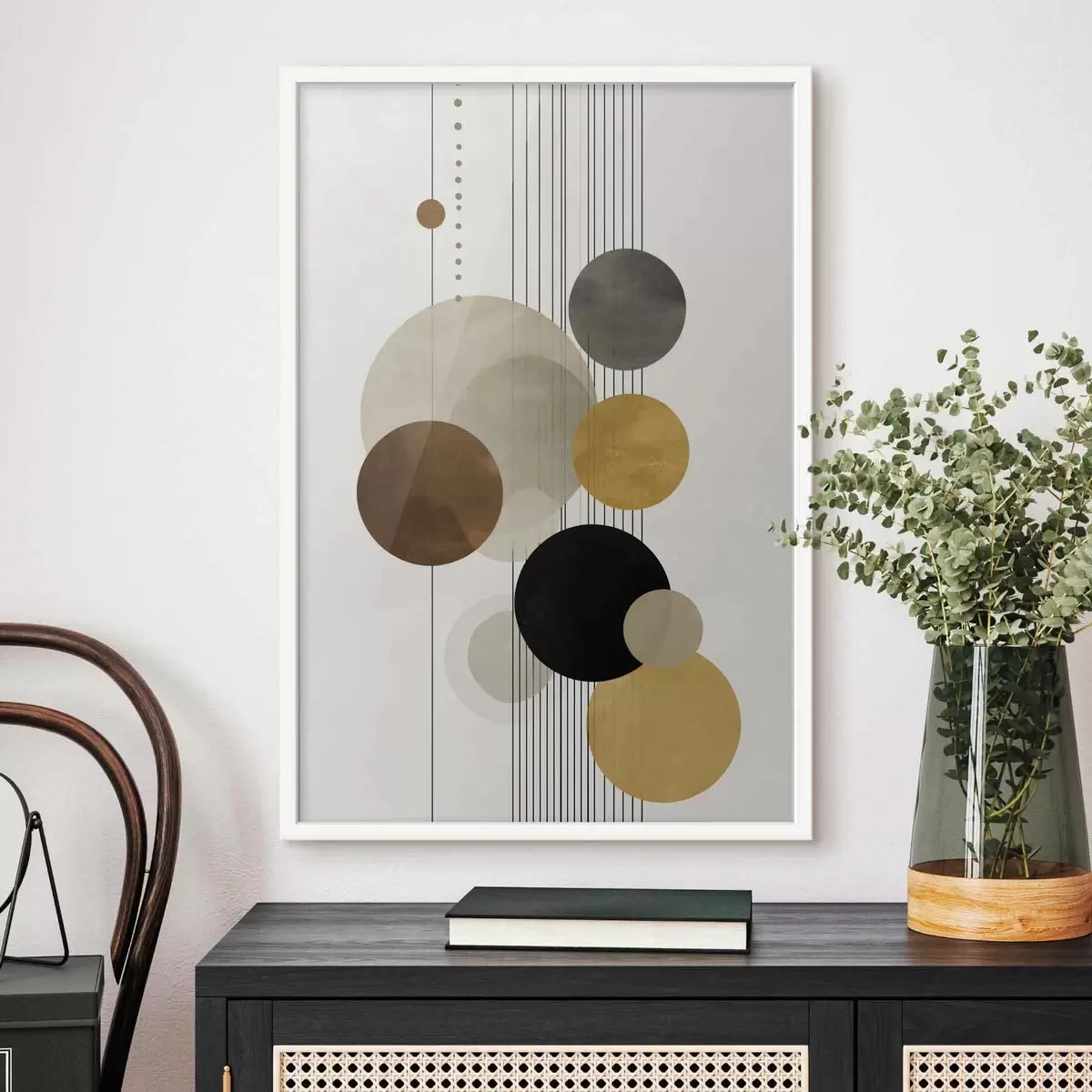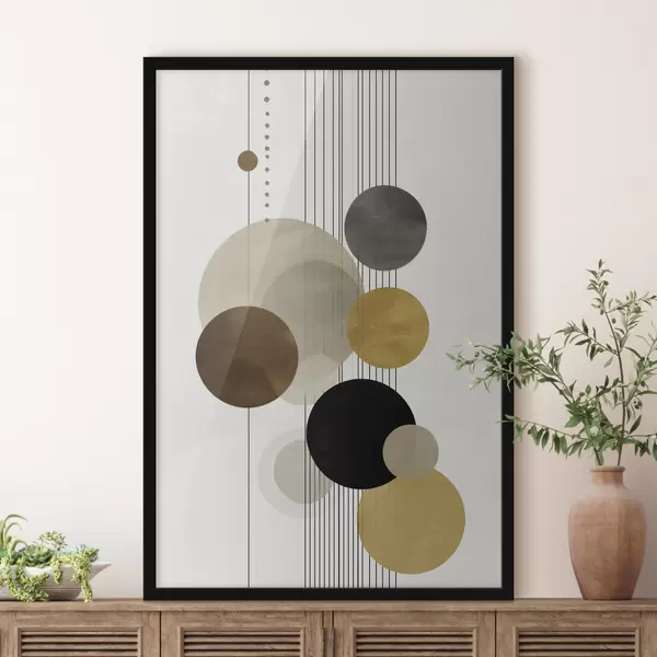 Poster abstracción con círculos y líneas en colores cálidos Nr f47237
