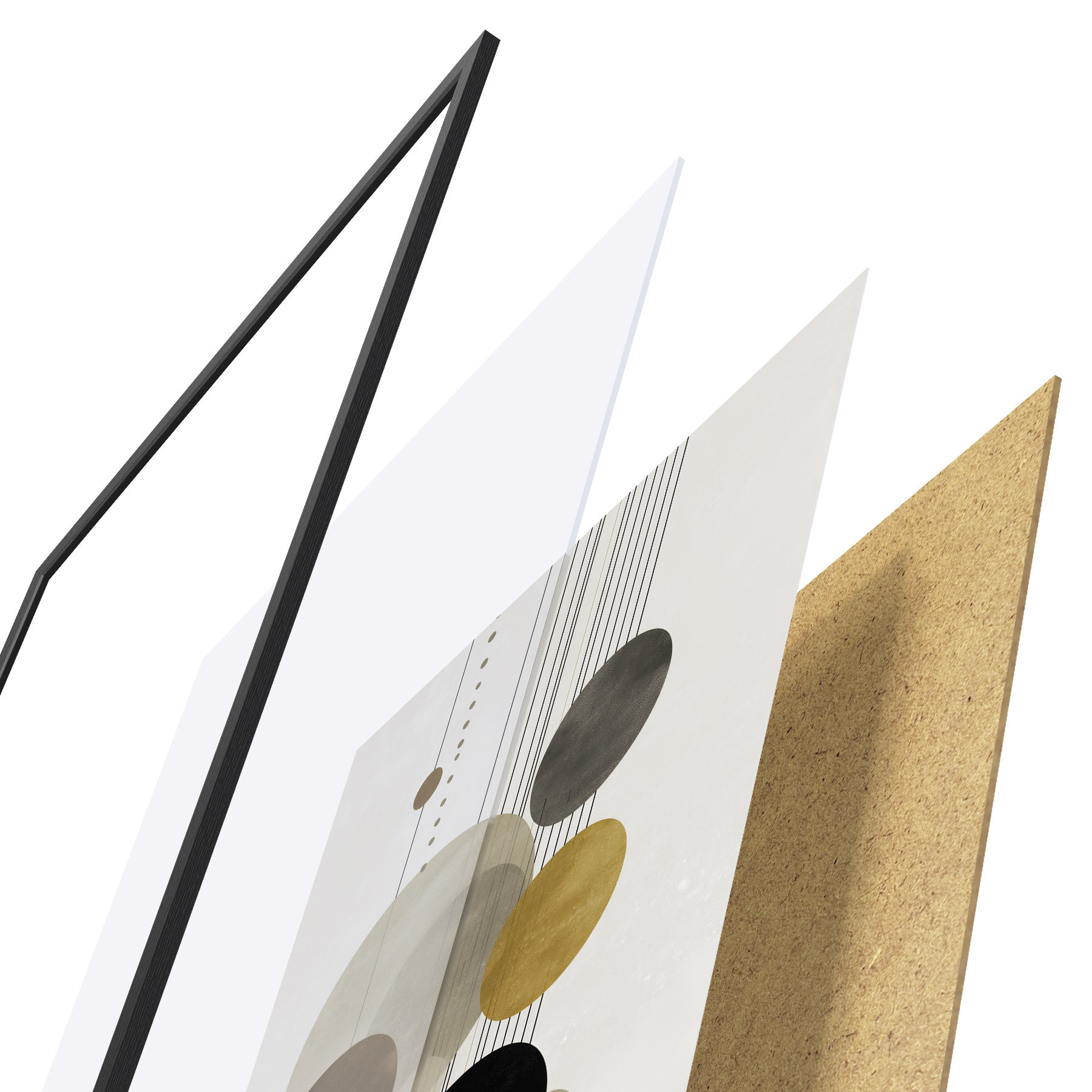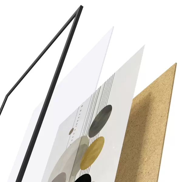 El póster consta de marco, plexiglás, imagen impresa y soporte de aglomerado. El póster puede colgarse inmediatamente en la pared gracias a los soportes de la parte posterior.