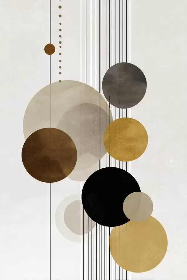 Poster abstracción con círculos y líneas en colores cálidos Nr f47237