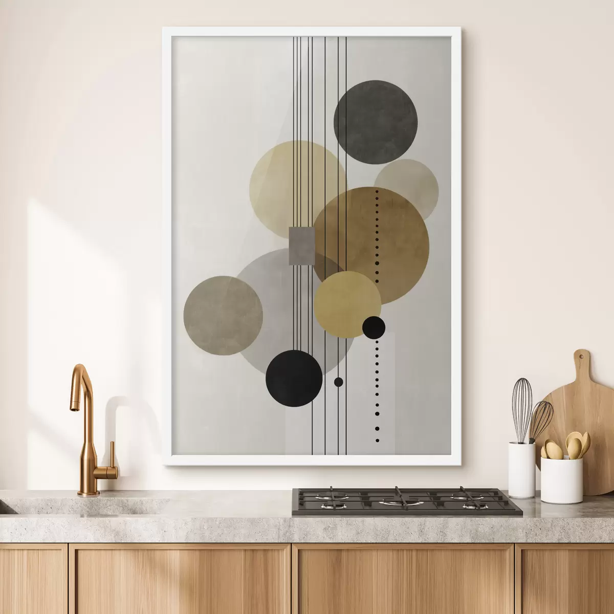Poster abstracción con círculos y líneas en colores cálidos Nr f47238