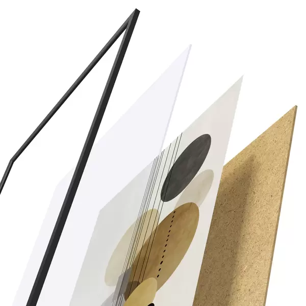 El póster consta de marco, plexiglás, imagen impresa y soporte de aglomerado. El póster puede colgarse inmediatamente en la pared gracias a los soportes de la parte posterior.