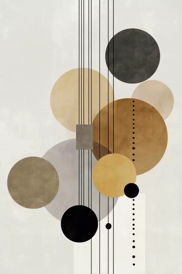 Poster abstracción con círculos y líneas en colores cálidos Nr f47238