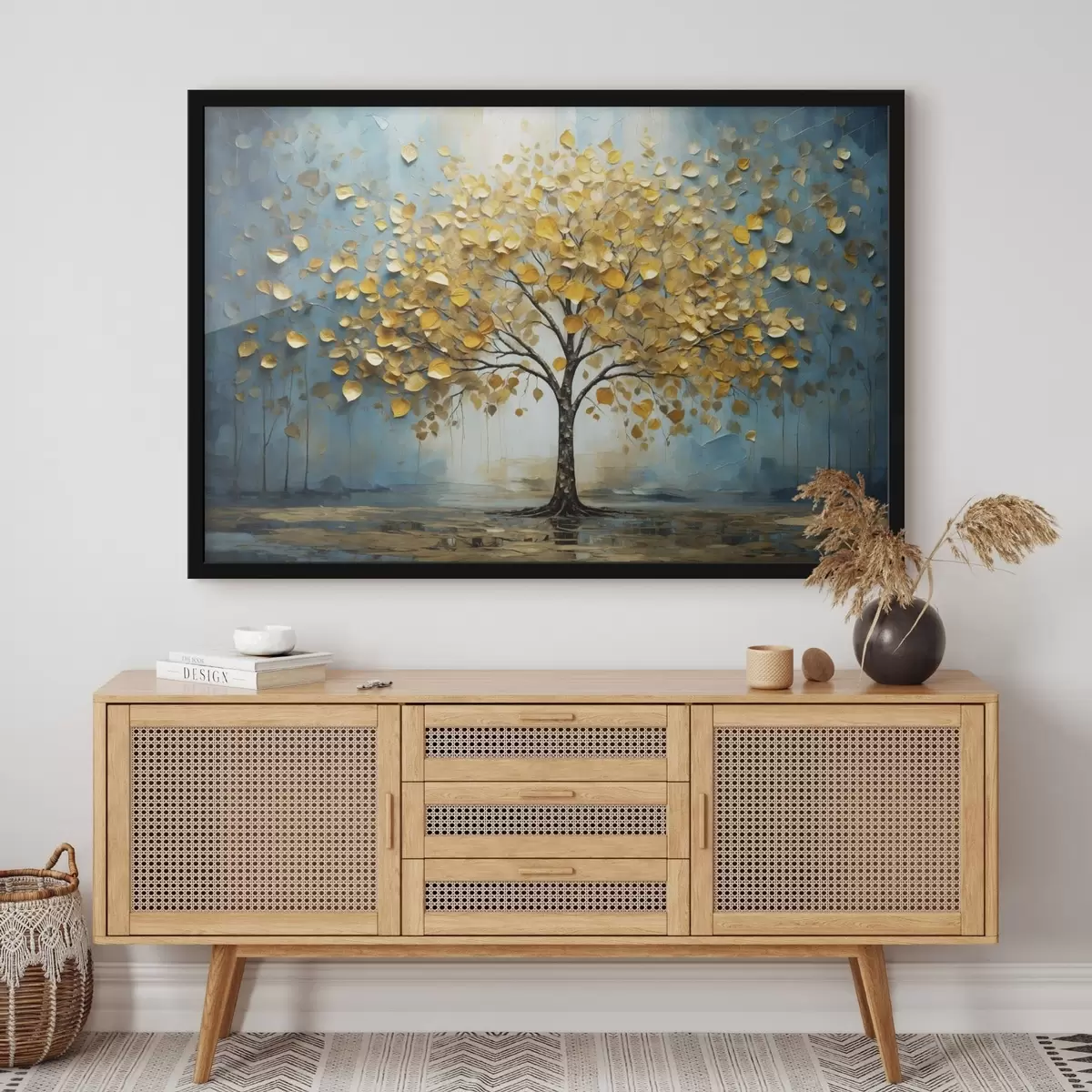 Poster Árbol con hojas amarillas sobre tonos azules f47256
