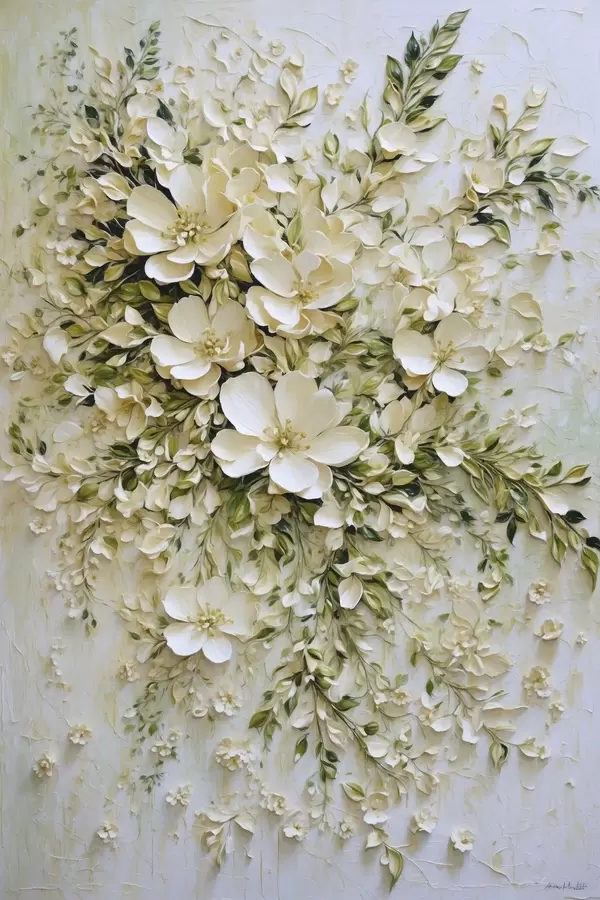 Poster Gran composición de flores y hojas color crema. Nr f47267