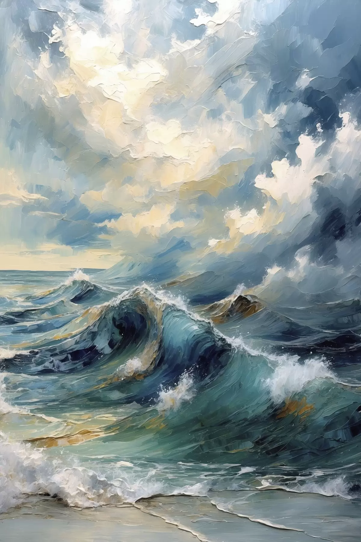Poster Olas del mar bajo un cielo nublado y luminoso Nr f47275
