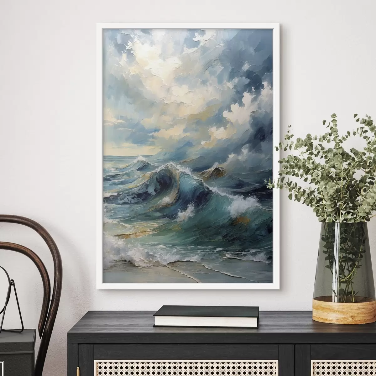 Poster Olas del mar bajo un cielo nublado y luminoso f47275