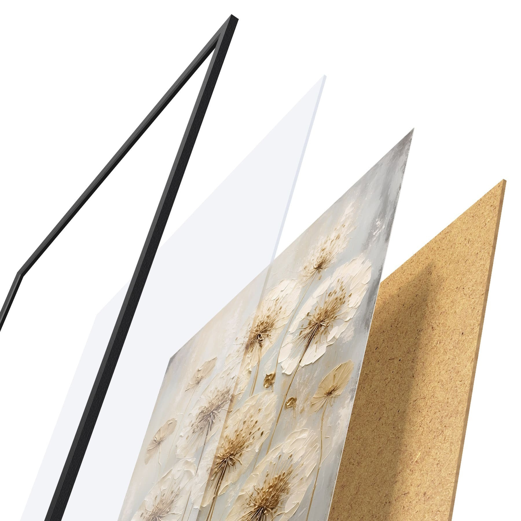 El póster consta de marco, plexiglás, imagen impresa y soporte de aglomerado. El póster puede colgarse inmediatamente en la pared gracias a los soportes de la parte posterior.
