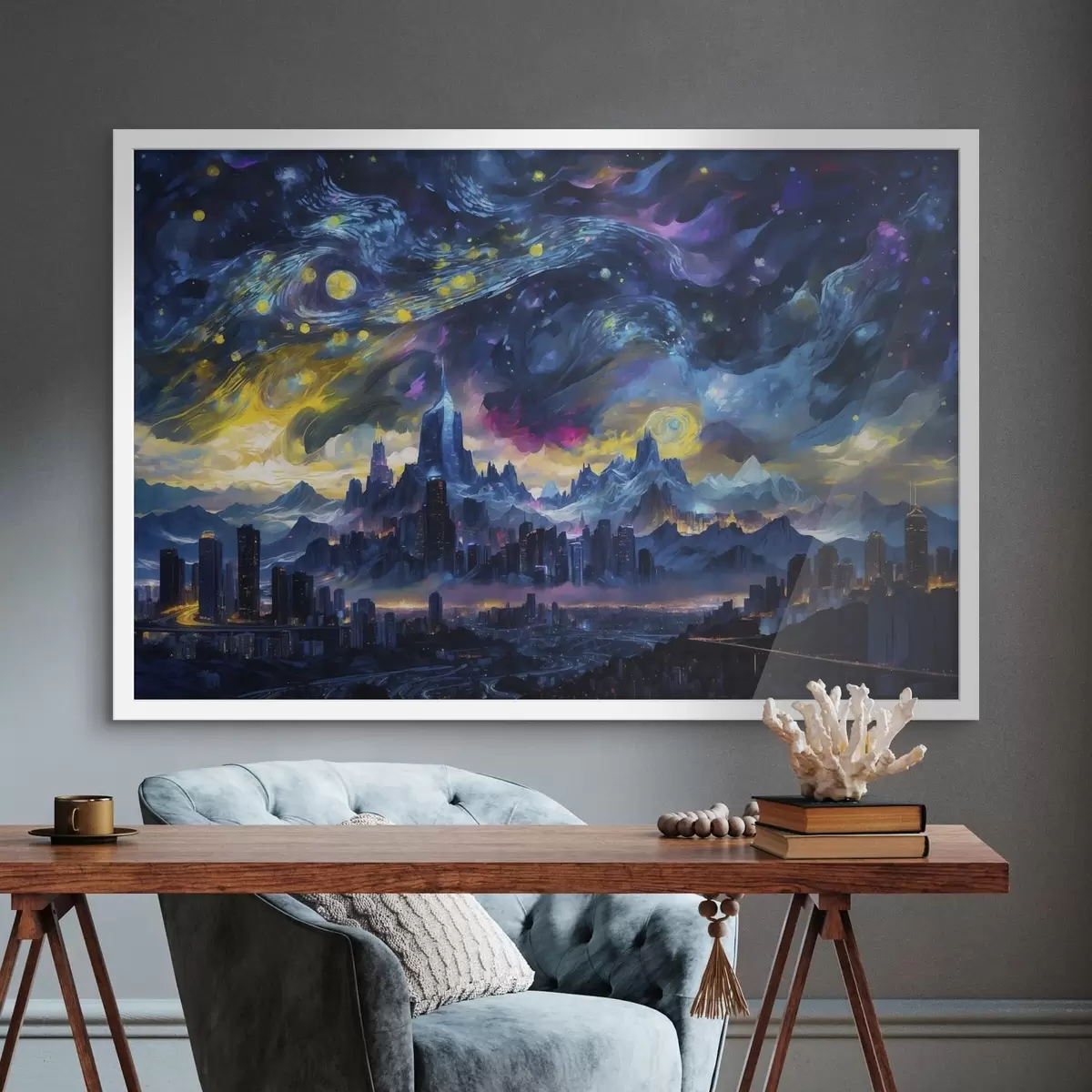 Poster Ciudad fantástica bajo un cielo nocturno resplandeciente f47288