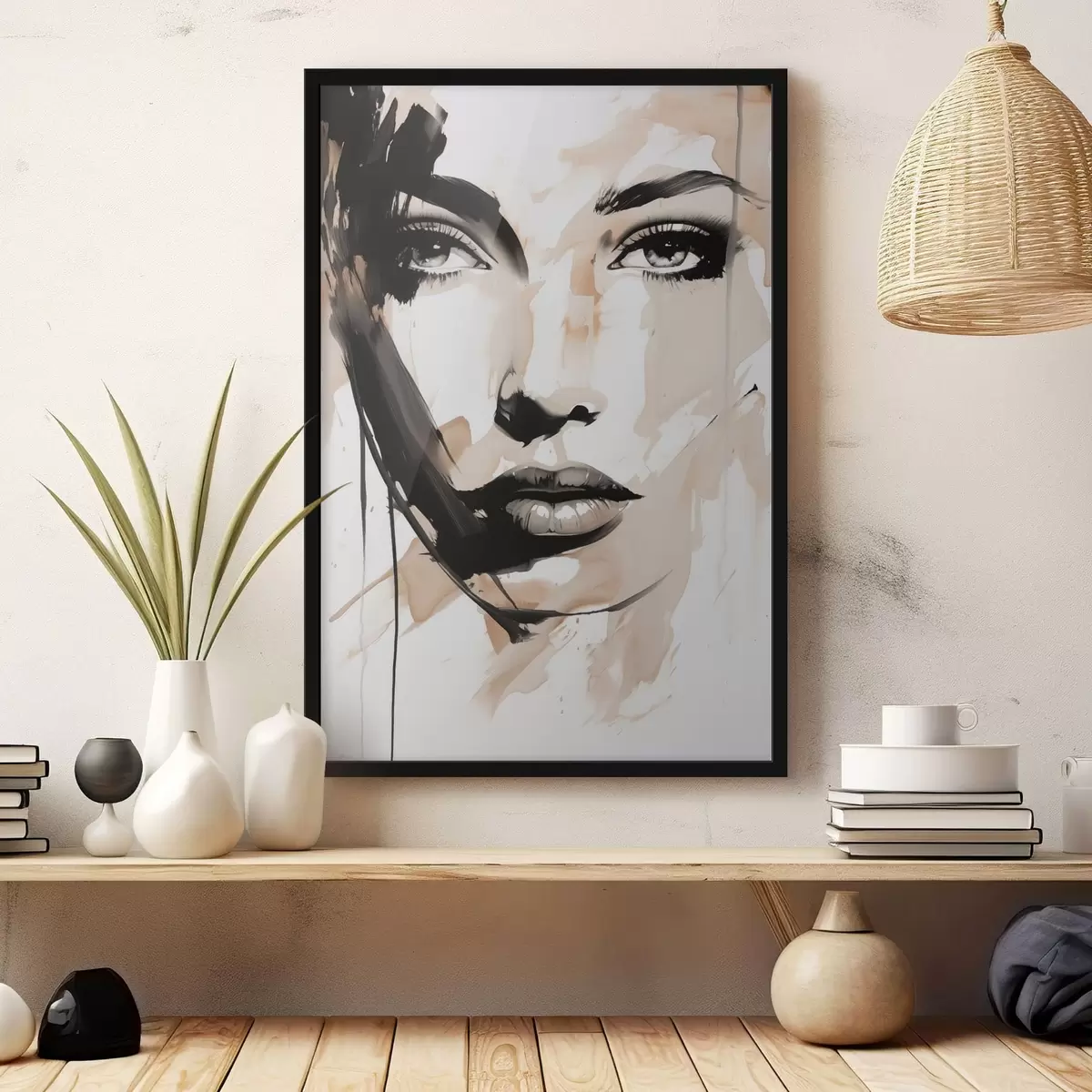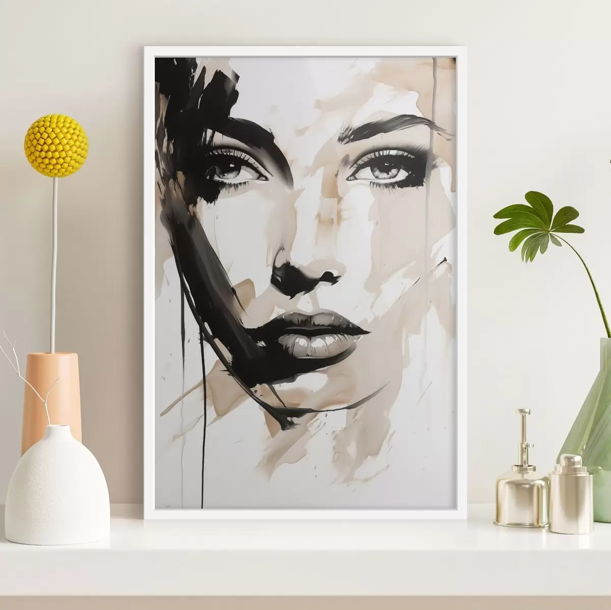 Poster Retrato femenino abstracto en tonos claros f47290