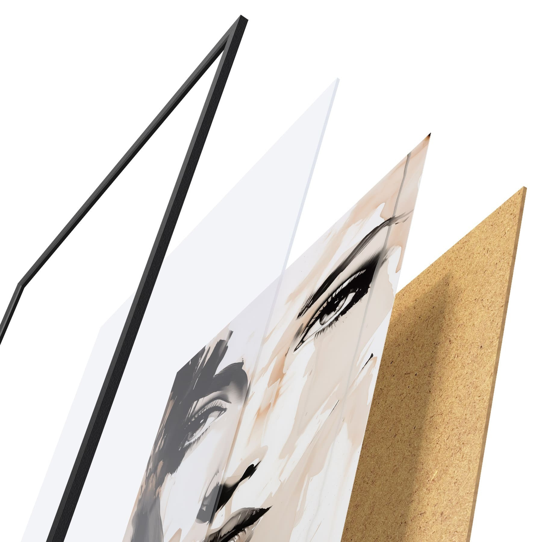 El póster consta de marco, plexiglás, imagen impresa y soporte de aglomerado. El póster puede colgarse inmediatamente en la pared gracias a los soportes de la parte posterior.