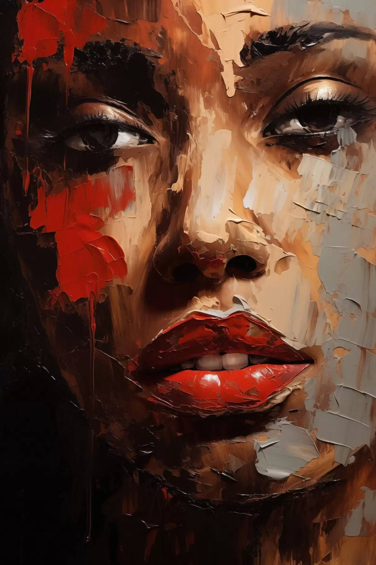 Poster Retrato femenino vívido con detalles en rojo f47293