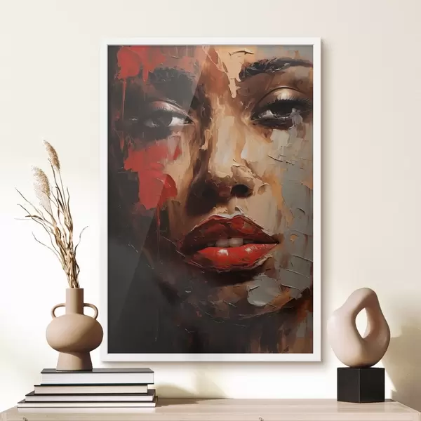 Poster Retrato femenino vívido con detalles en rojo Nr f47293