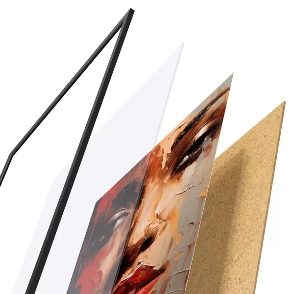 El póster consta de marco, plexiglás, imagen impresa y soporte de aglomerado. El póster puede colgarse inmediatamente en la pared gracias a los soportes de la parte posterior.