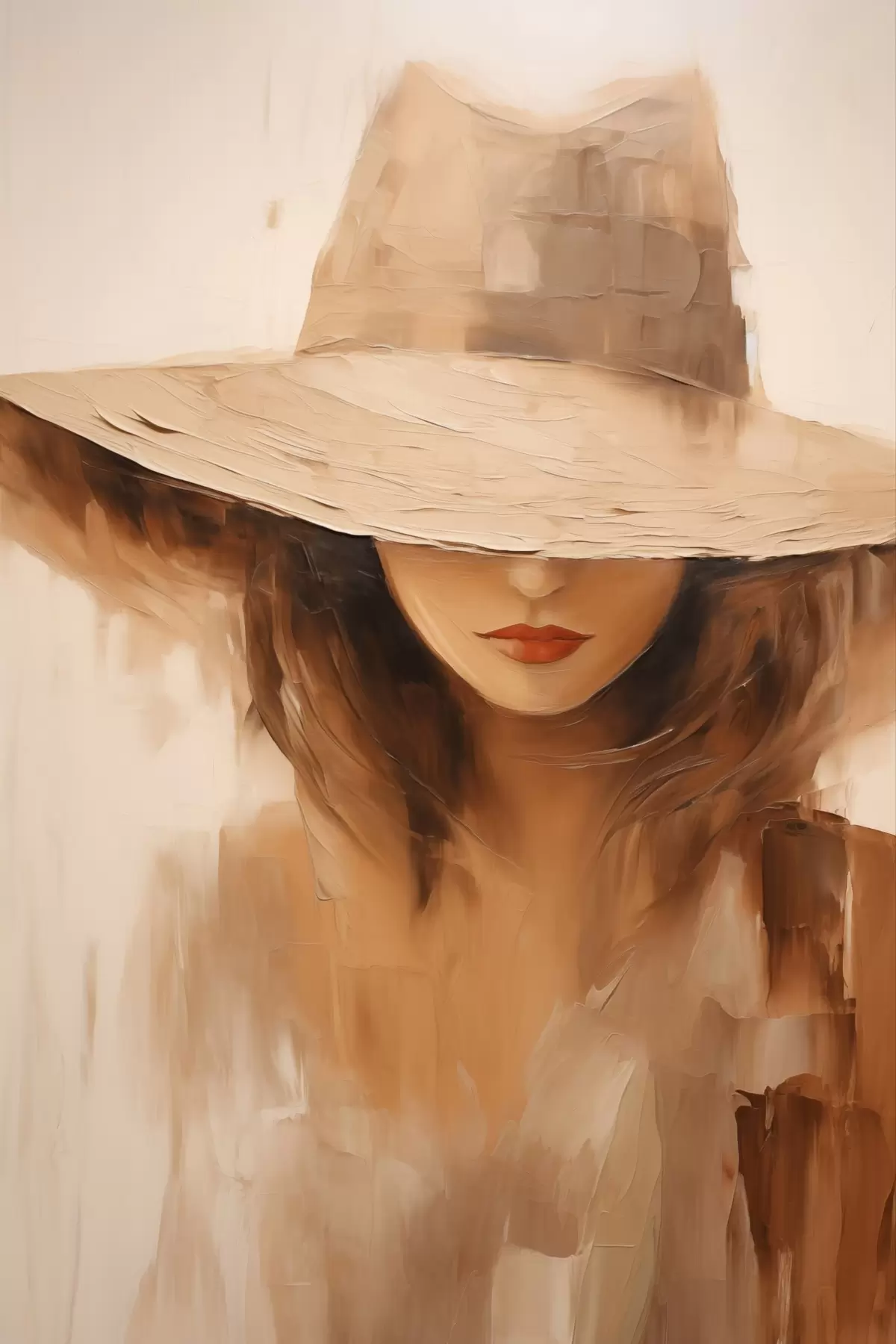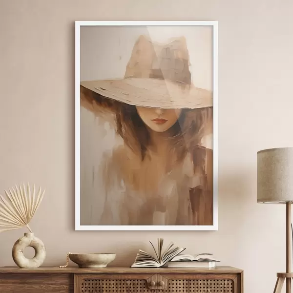 Poster Mujer con sombrero en cálidos trazos abstractos Nr f47312
