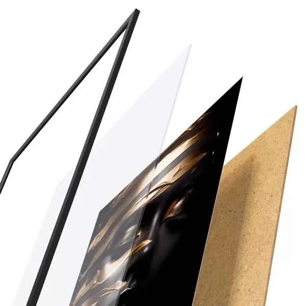 El póster consta de marco, plexiglás, imagen impresa y soporte de aglomerado. El póster puede colgarse inmediatamente en la pared gracias a los soportes de la parte posterior.
