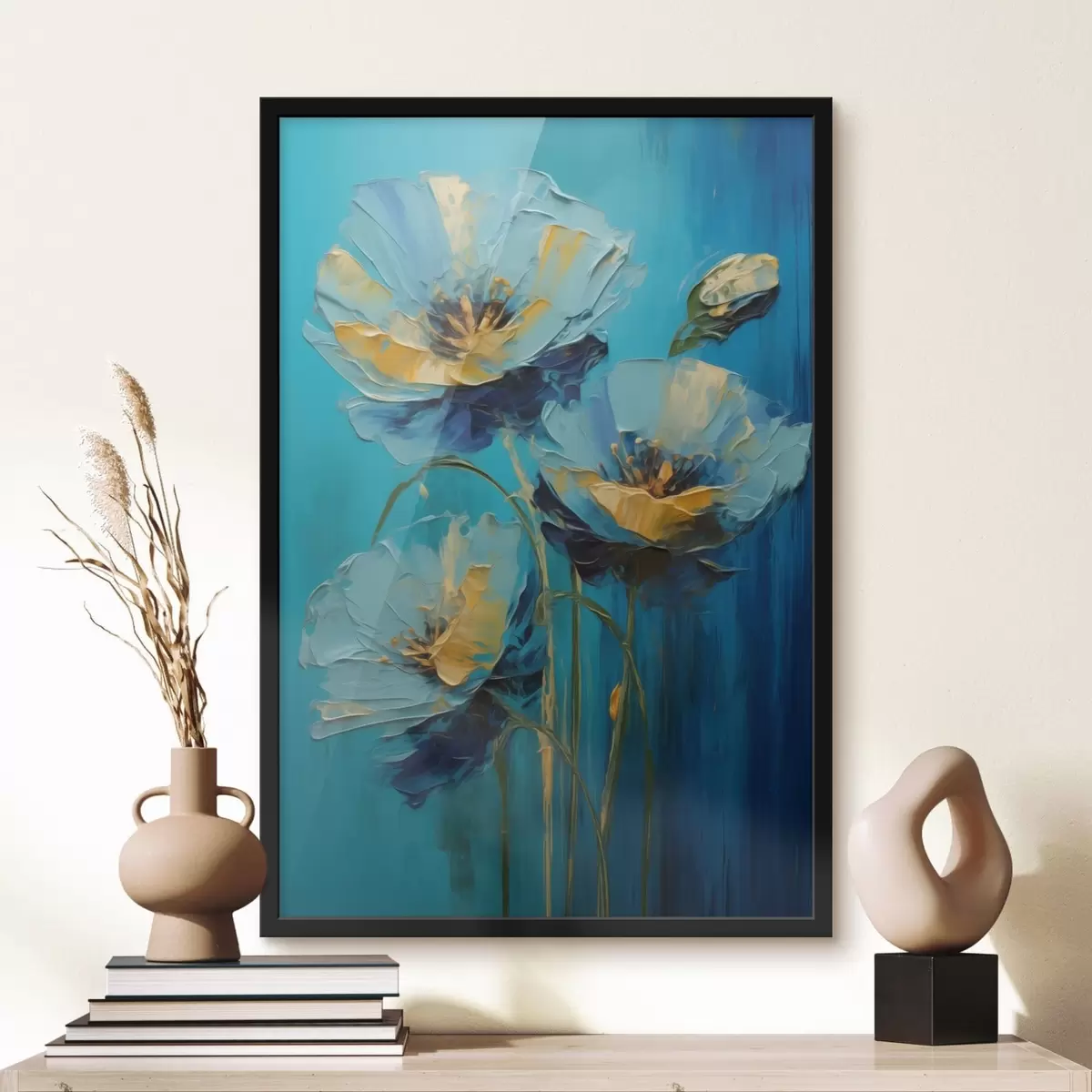Poster Flores azules sobre un fondo vivo Nr f47324