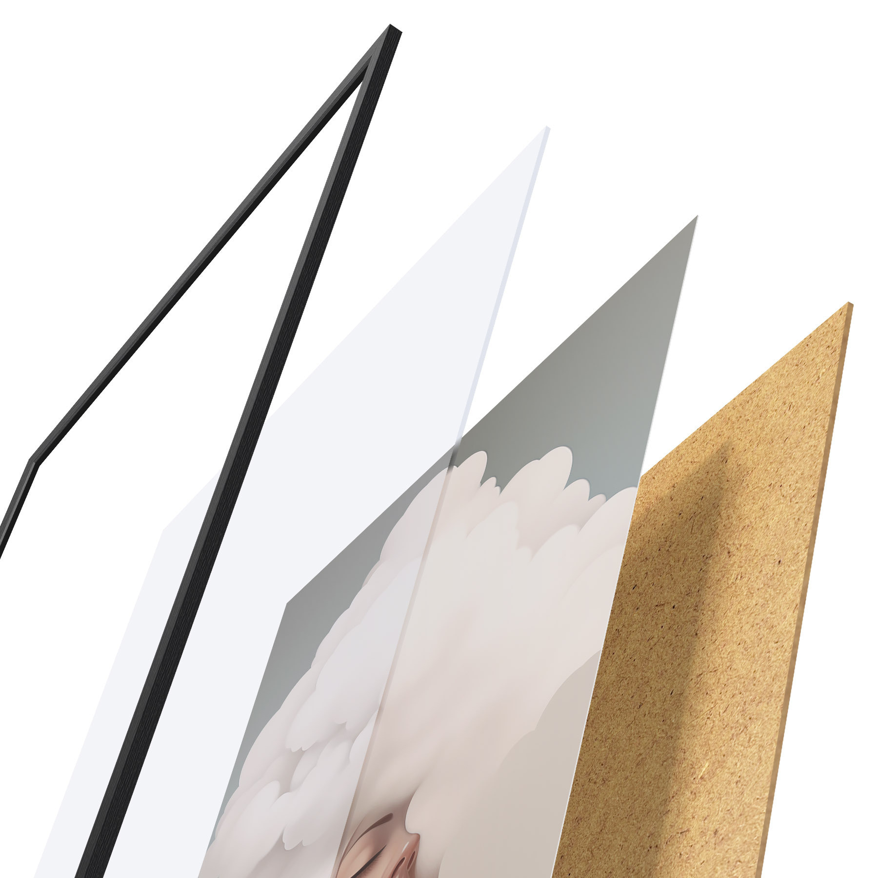 El póster consta de marco, plexiglás, imagen impresa y soporte de aglomerado. El póster puede colgarse inmediatamente en la pared gracias a los soportes de la parte posterior.
