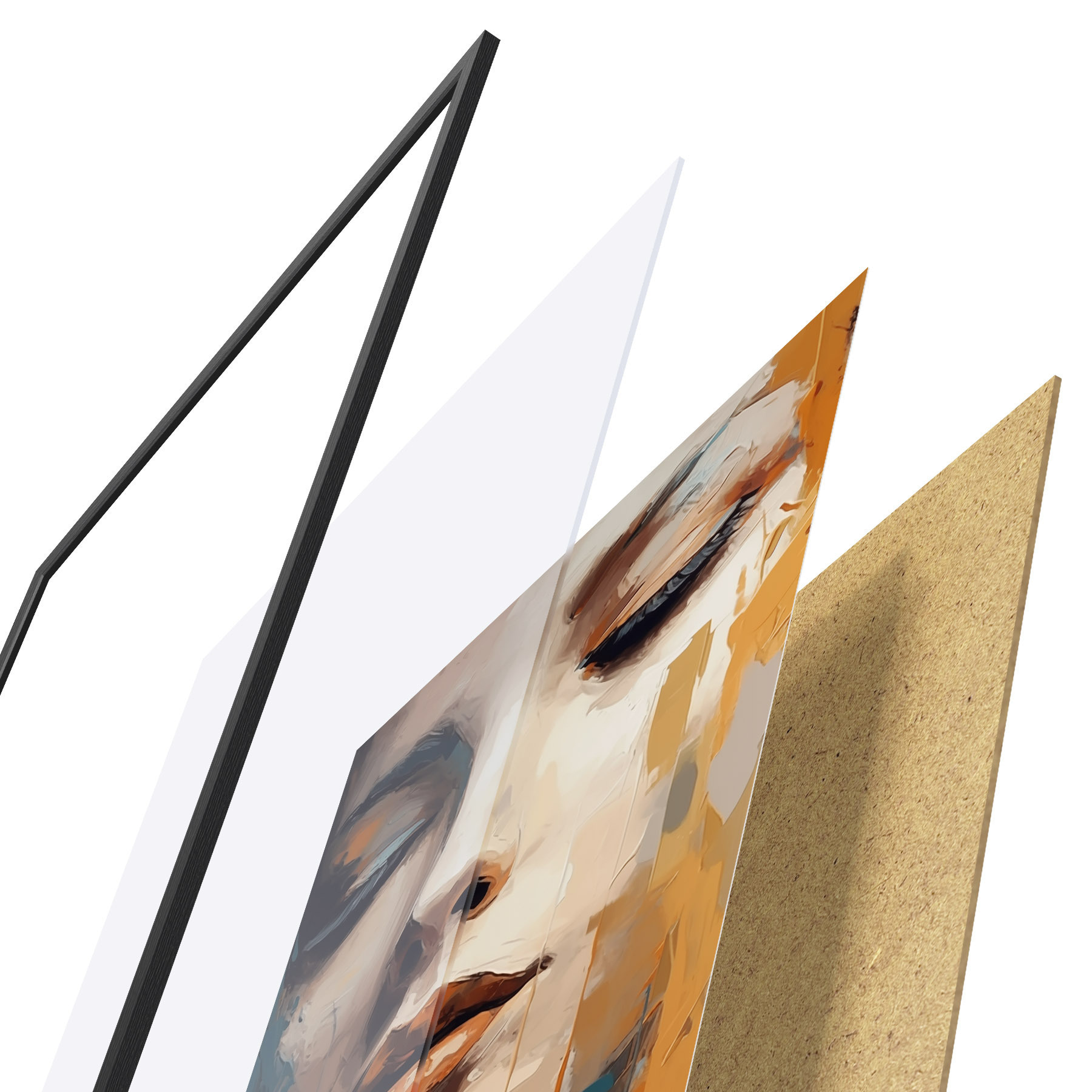 El póster consta de marco, plexiglás, imagen impresa y soporte de aglomerado. El póster puede colgarse inmediatamente en la pared gracias a los soportes de la parte posterior.